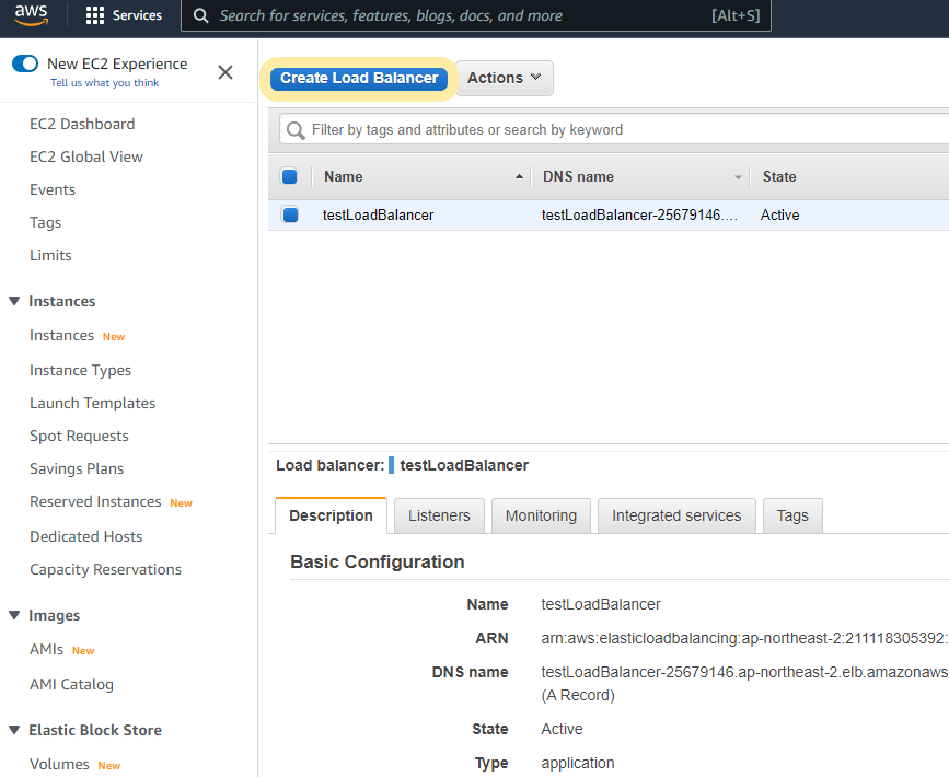 Load Balancers 페이지에 접속해 'Create Load Balancer' 버튼을 클릭합니다.