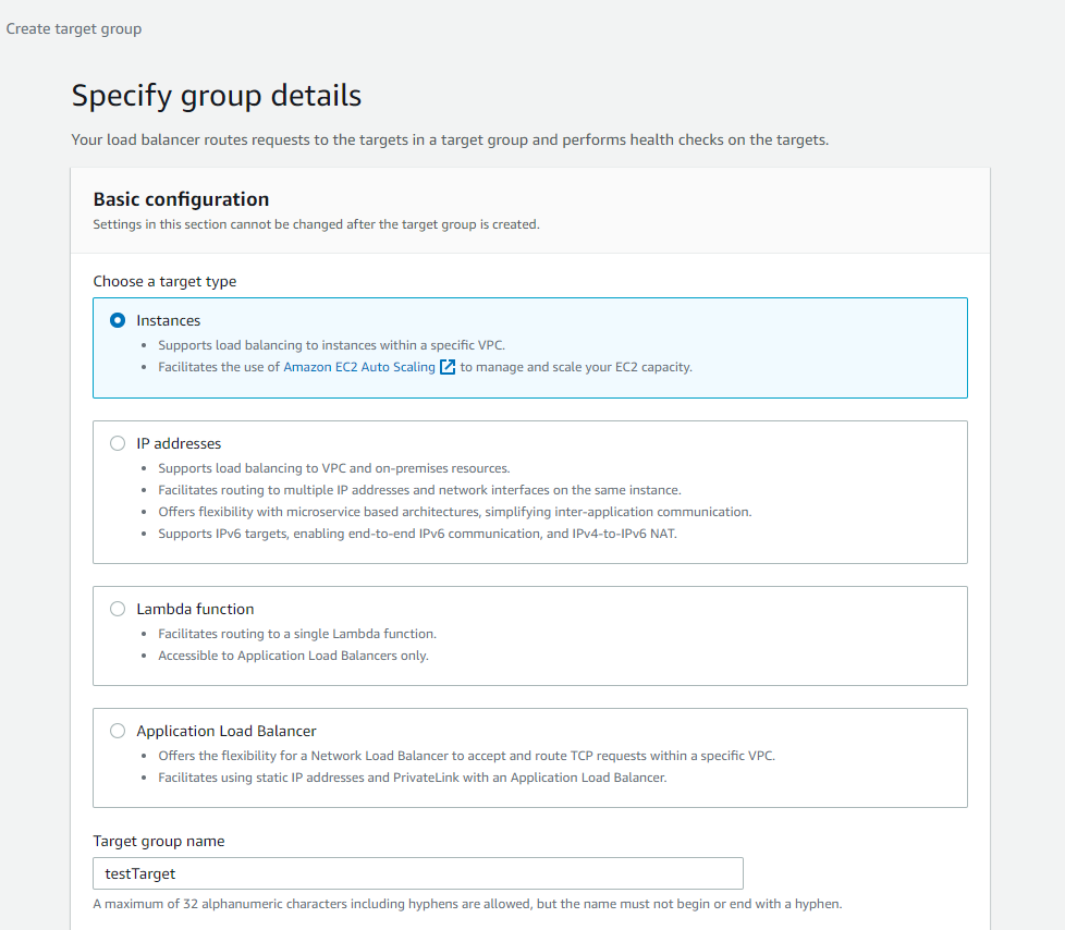 2. Load Balancer를 통해 리다이렉트 할 네트워크 Target Group 생성