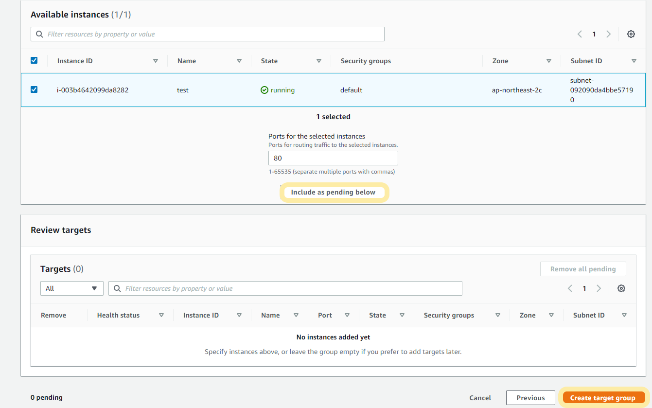 인증서 생성이 완료되었다면, SSL이 적용된 HTTPS 서버로 리다이렉트할 타겟그룹을 생성합니다. 여기서 생성된 타겟그룹은 이후 로드밸런서 생성시에 활용됩니다.