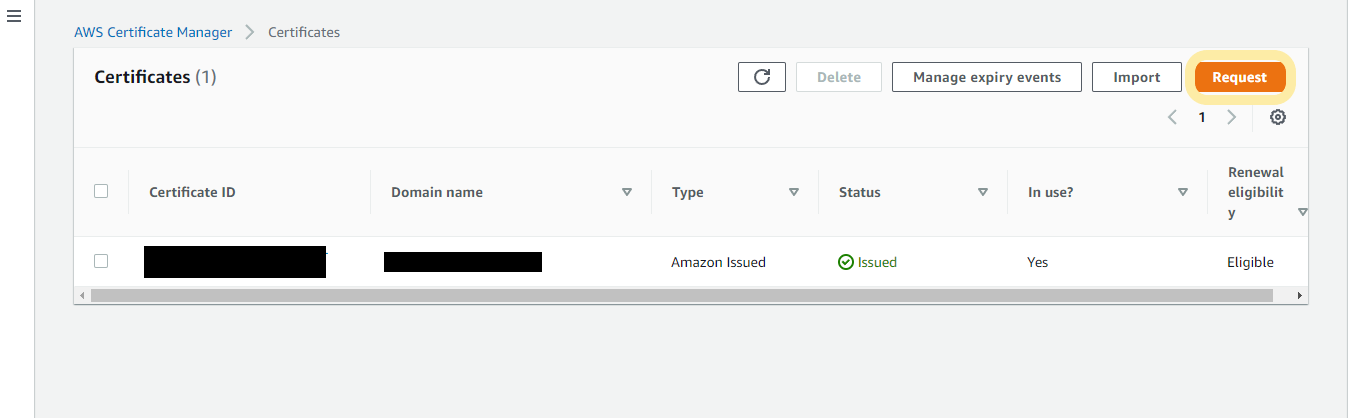 1. Certificate Manager에서 SSL에 사용할 인증서 발급