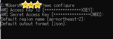 - Default region name (ap-northeast-2 등)