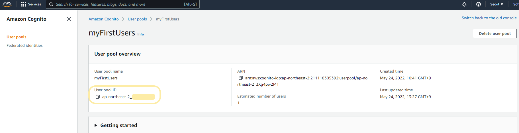client id, client secret, client name, pool id는 cognito console에서 확인하실 수 있습니다.(아래 이미지 참고)